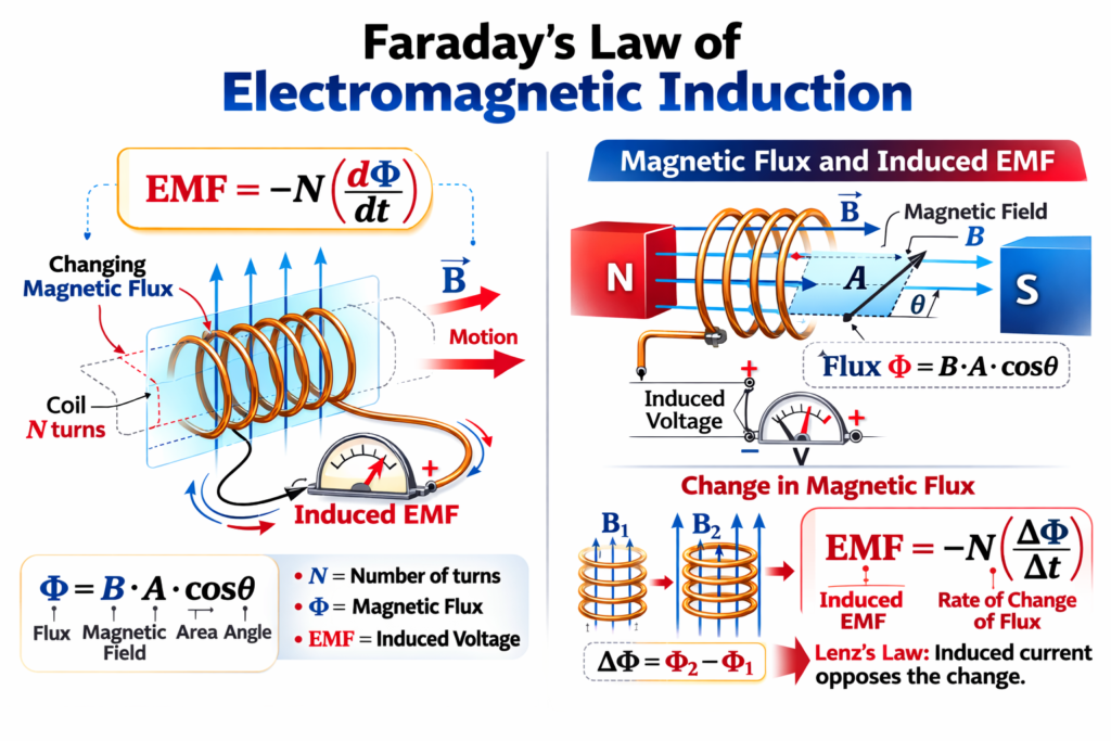 Faraday’s Law Calculator – Calculate EMF (Electromagnetic Induction)